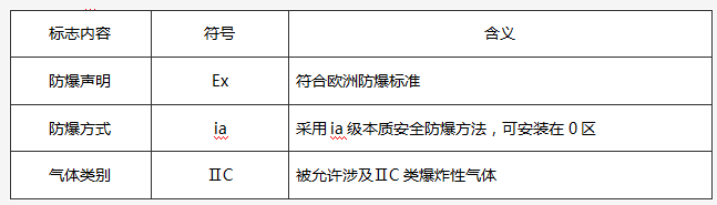 ?注:該標(biāo)志中無溫度組別項(xiàng),說明該儀表不與爆炸性氣體直接接觸。